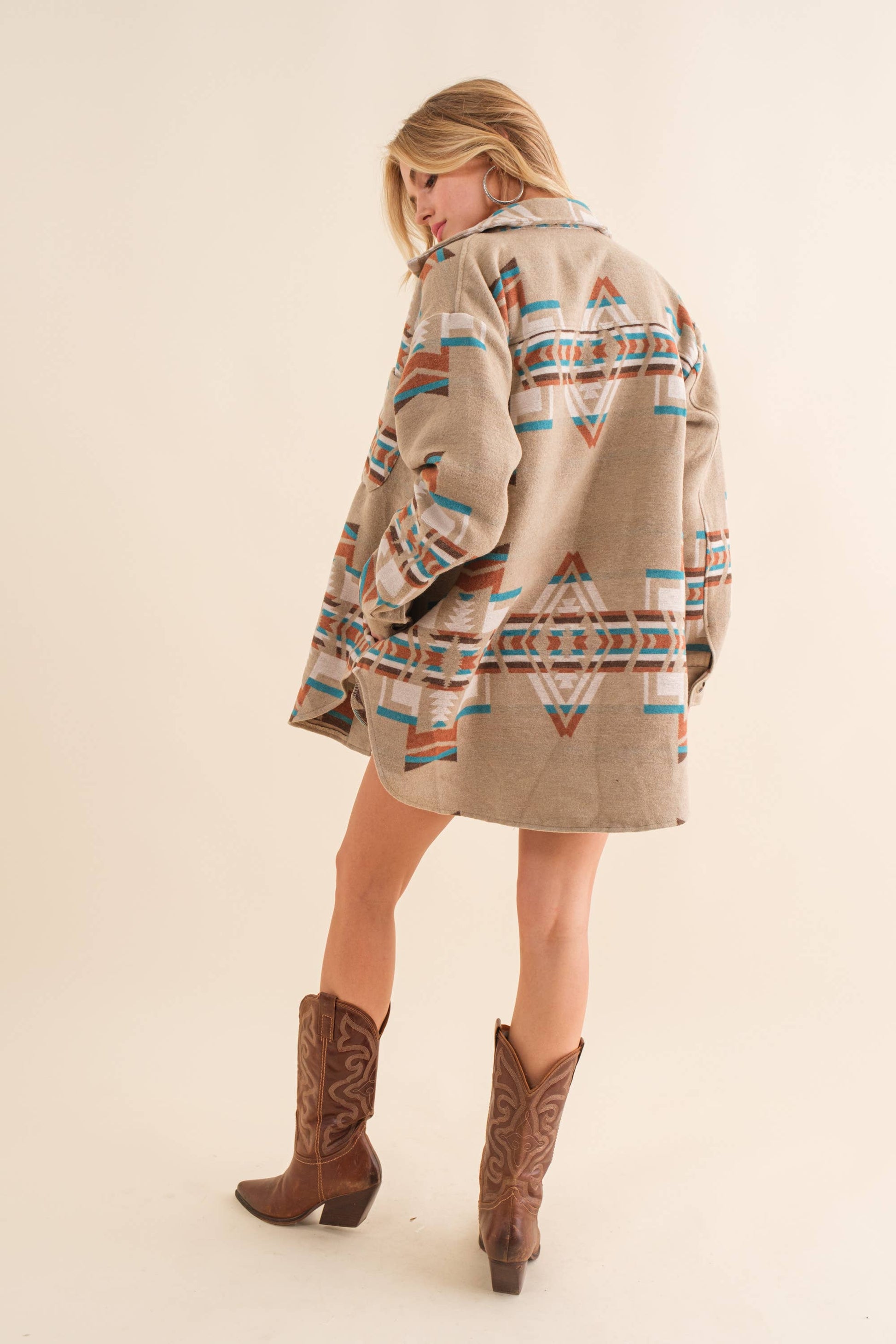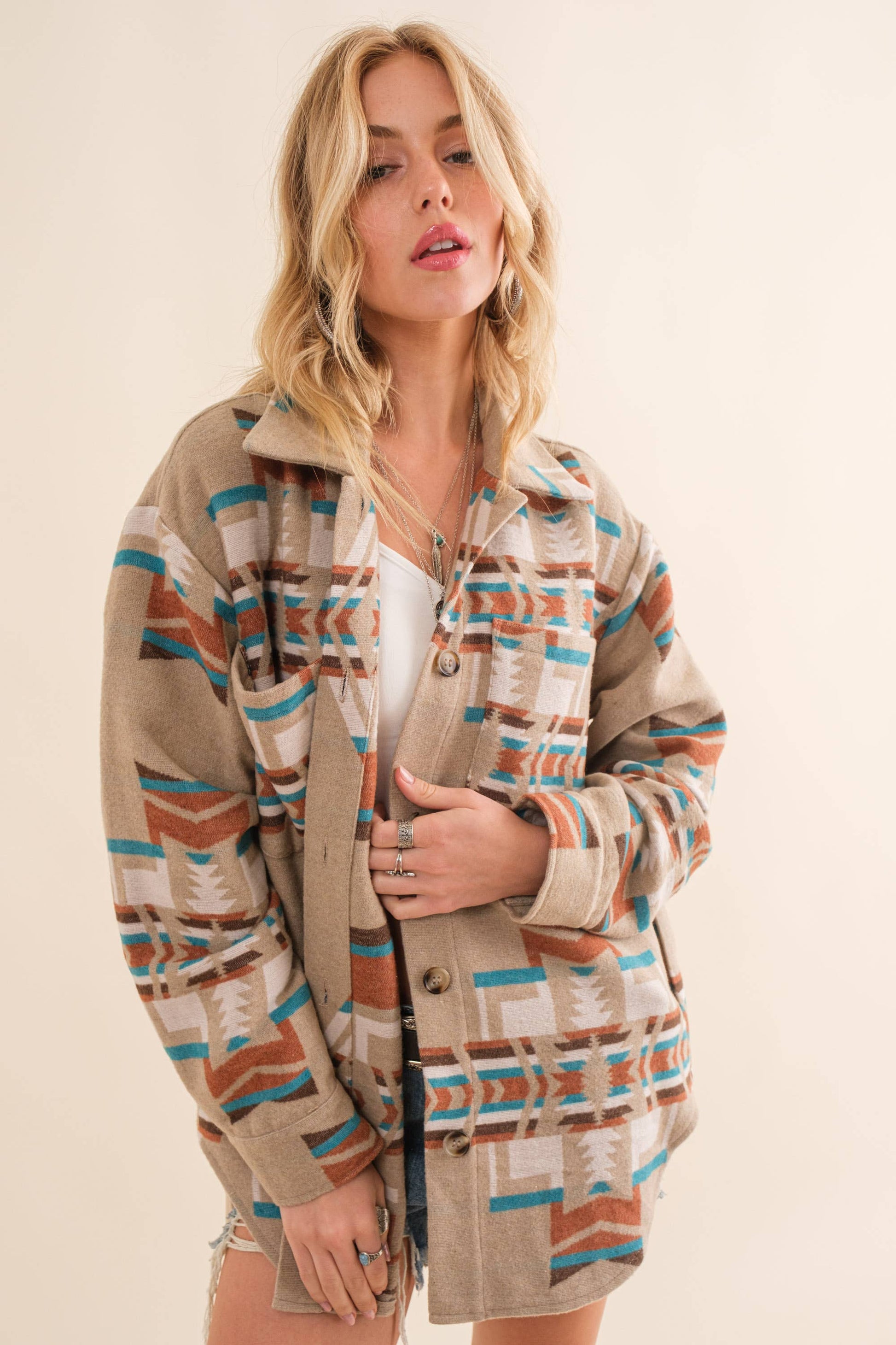 Blue B Exclusive Aztec Pattern Button Up Tunic Shirt Jacket